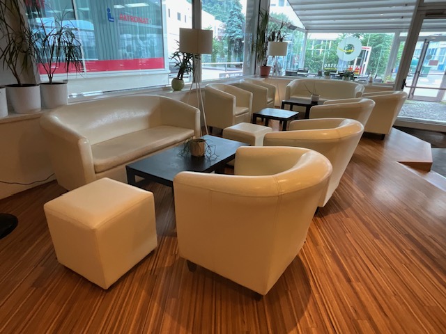 In unserer Bar erwarten euch neben stärkendem Kaffee, Croissants, belegten Panini,